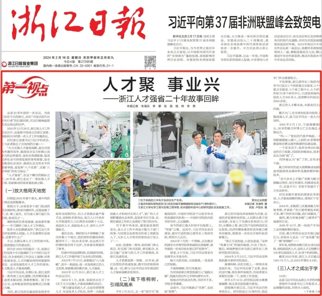 《浙江日报》头版关注!乌镇实验室向“新”而行,助力桐乡打造千亿级新材料产业集群